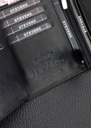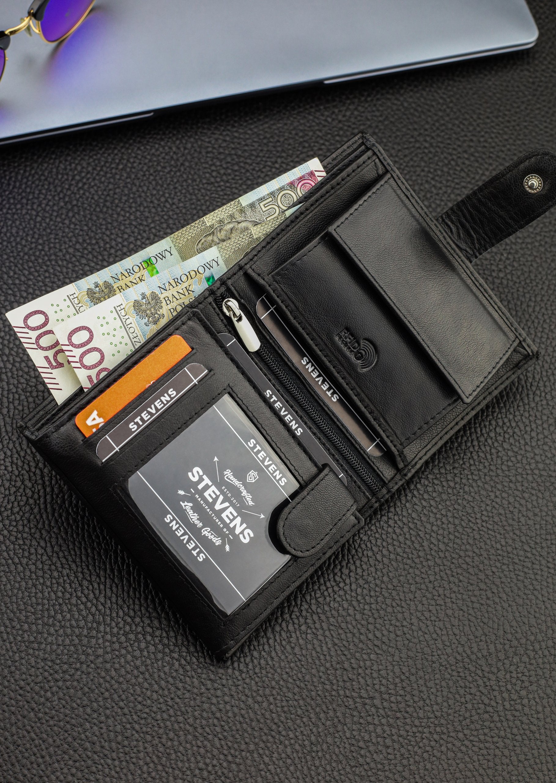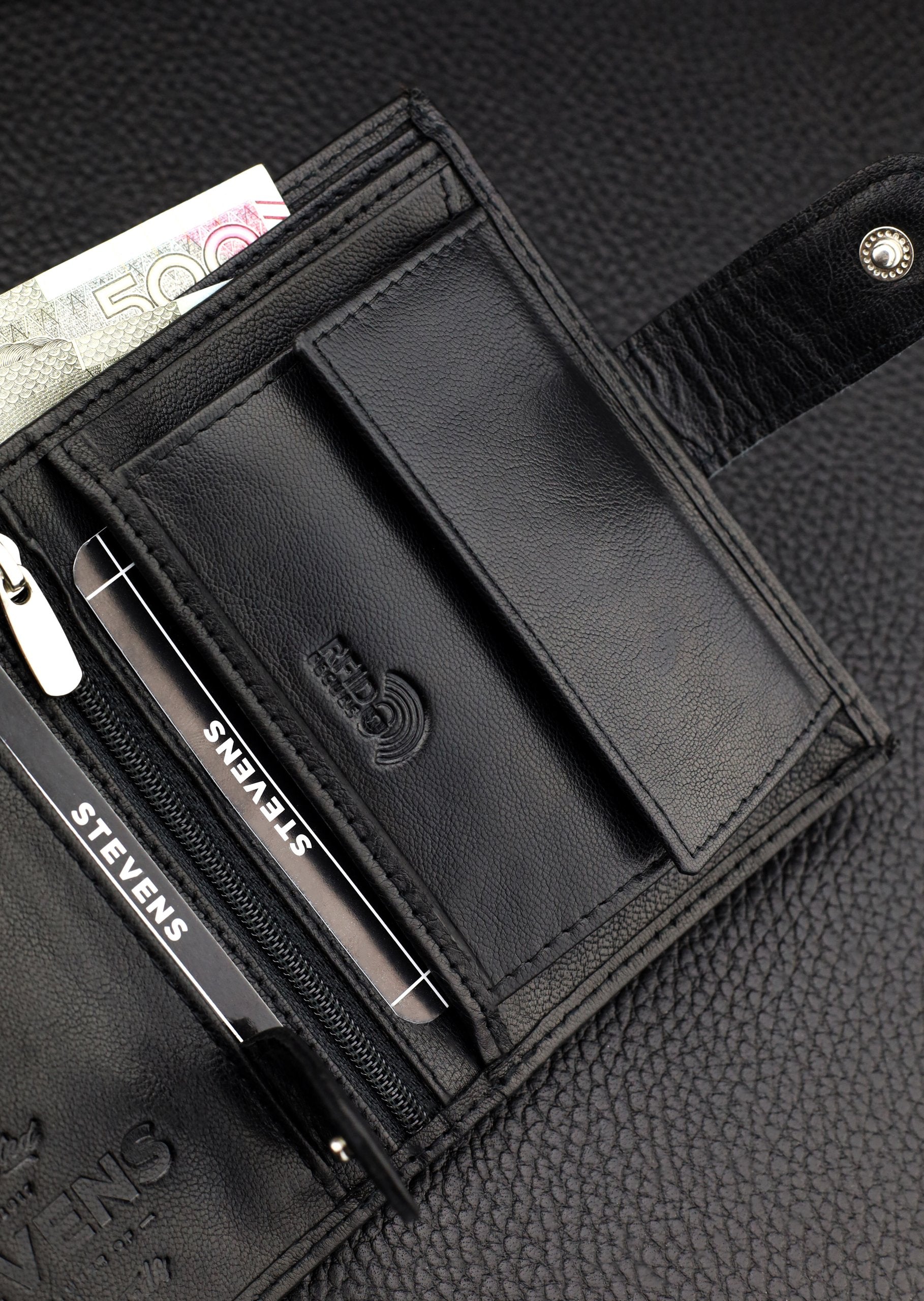 Skórzany portfolio damski STEVENS RFID skóra Czarny Q2 Marka Stevens Melns vīriešu maks STEVENS ar ķēdīti