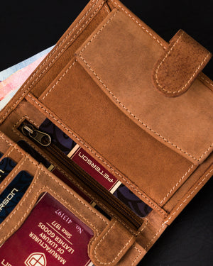 Šis īstas ādas vīriešu maks ir lieliska izvēle tiem, kas novērtē kvalitāti un funkcionalitāti. Ar savu gaiši brūno krāsu un lielo izmēru tas piedāvā pietiekami daudz vietas jūsu kartēm un skaidrai naudai. Turklāt RFID aizsardzība nodrošina jūsu datu drošību.