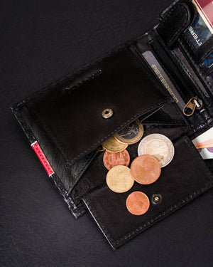 Šis elegantais un funkcionālais maks ir lieliska izvēle vīriešiem, kuri novērtē kvalitāti un drošību. Izgatavots no īstas ādas, tas ne tikai izskatās stilīgi, bet arī nodrošina izturību. Melnā krāsa piešķir klasisku un daudzpusīgu izskatu, kas piemērots jebkuram gadījumam.