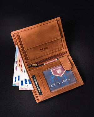 Šis elegantais vīriešu maks ir izgatavots no augstas kvalitātes dabīgas zamšādas un nubuka ādas, kas nodrošina izturību un stilīgu izskatu. Brūnais dizains nodrošina klasisku un daudzpusīgu izskatu, kas piemērots dažādiem gadījumiem.