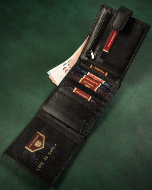 Šis elegantais un funkcionālais maks ir lieliska izvēle vīriešiem, kuri novērtē kvalitāti un drošību. Izgatavots no īstas ādas, tas ne tikai izskatās grezni, bet arī ir izturīgs. Melnā krāsa nodrošina daudzpusību, tāpēc maks lieliski iederēsies jebkurā stilā. Ar savu lielo izmēru un vairāk nekā 10 karšu nodalījumiem šis maks nodrošina, ka viss nepieciešamais ir pa rokai. Turklāt integrētā RFID aizsardzība palīdzēs aizsargāt jūsu kartes no neatļautas skenēšanas.