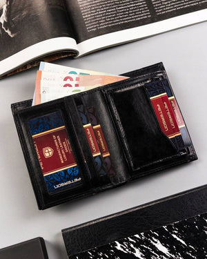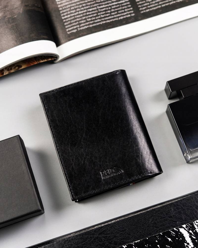 Šis elegantais un funkcionālais maks ir lieliska izvēle vīriešiem, kuri novērtē kvalitāti un drošību. Izgatavots no īstas ādas, tas ne tikai izskatās grezni, bet arī ir izturīgs. Melnā krāsa nodrošina daudzpusību, padarot maku ideāli piemērotu jebkuram gadījumam.