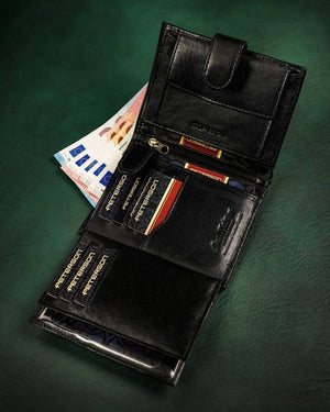Šis elegantais un funkcionālais maks ir lieliska izvēle vīriešiem, kuri novērtē kvalitāti un drošību. Izgatavots no īstas ādas, tas nodrošina izturību un stilīgu izskatu. Melnā krāsa nodrošina daudzpusību, tāpēc maks lieliski iederēsies jebkurā stilā. Pateicoties lielajam izmēram un vairāk nekā 10 karšu nodalījumiem, tas apmierinās visas jūsu vajadzības. Turklāt integrētā RFID aizsardzība palīdzēs aizsargāt jūsu kartes no nevēlamas skenēšanas.