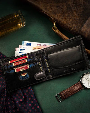 Šis elegantais un praktiskais maks ir lieliska izvēle vīriešiem, kuri novērtē kvalitāti un drošību. Izgatavots no īstas ādas, tas ne tikai izskatās stilīgi, bet arī nodrošina izturību. Melnā krāsa nodrošina daudzpusību, padarot maku ideāli piemērotu jebkuram gadījumam. Pateicoties integrētajai RFID aizsardzībai, jūsu kartes būs aizsargātas no nevēlamas skenēšanas.