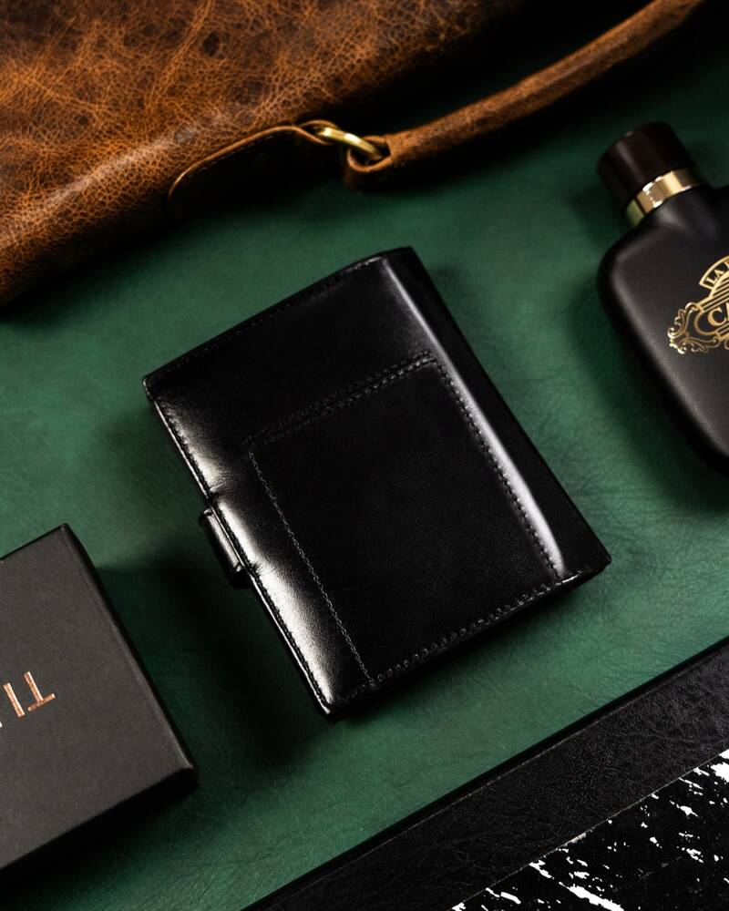 Šis elegantais melnais maks, kas izgatavots no augstas kvalitātes īstas ādas, ir lieliska izvēle vīriešiem, kuri novērtē stilu un funkcionalitāti. Tā dizains nodrošina ērtu lietošanu un izturību.