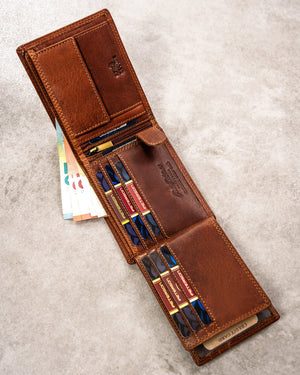 Šis elegantais un funkcionālais maks ir lieliska izvēle vīriešiem, kuri novērtē kvalitāti un stilu. Izgatavots no īstas ādas, tas nodrošina izturību un uzticamību. Gaiši brūnā krāsa piešķir tam klasisku un daudzpusīgu izskatu, kas piemērots dažādiem gadījumiem.