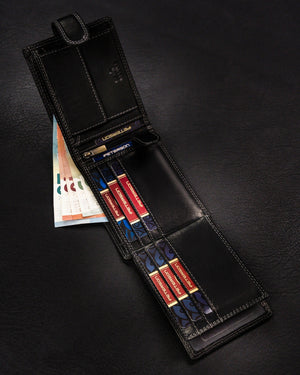 Šis elegantais maks, kas izgatavots no augstas kvalitātes īstas ādas, ir lieliska izvēle vīriešiem, kuri novērtē stilu un funkcionalitāti.