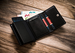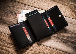Šis elegantais melnais maks, kas izgatavots no augstas kvalitātes īstas ādas, ir lieliska izvēle vīriešiem, kuri novērtē stilu un funkcionalitāti. Kompaktais dizains padara to ērtu nēsāšanai katru dienu.
