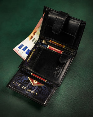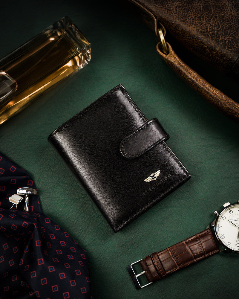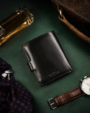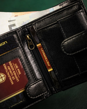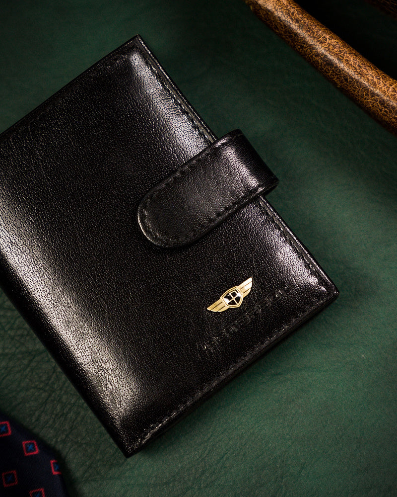 Šis elegantais melnais maks ir izgatavots no augstas kvalitātes īstas ādas, kas nodrošina izturību un stilīgu izskatu. Tā kompaktais izmērs ir lieliski piemērots ikdienas lietošanai.