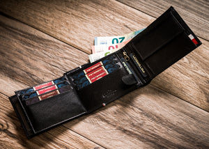 Šis maks ir ne tikai stilīgs, bet arī praktisks, ar pietiekami daudz vietas jūsu kartēm un skaidrai naudai. Turklāt iebūvētā RFID aizsardzība palīdzēs aizsargāt jūsu personas datus no neatļautas skenēšanas.