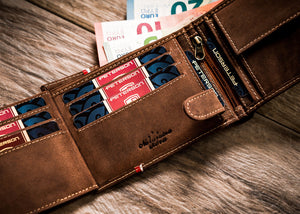 Šis īstas ādas vīriešu maks ir lieliska izvēle tiem, kas novērtē kvalitāti un funkcionalitāti. Brūnais dizains piešķir eleganci, savukārt lielais izmērs nodrošina pietiekami daudz vietas visām jūsu kartēm un skaidrai naudai. Pateicoties integrētajai RFID aizsardzībai, jūsu personas dati būs pasargāti no neatļautas skenēšanas. Makam ir 6–10 karšu nodalījumi, tāpēc varat ērti uzglabāt visas nepieciešamās kartes. Tā kompaktie izmēri ļauj to viegli ievietot kabatā vai somā.
