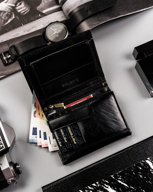 Šis elegantais un funkcionālais maks ir lieliska izvēle vīriešiem, kuri novērtē kvalitāti un drošību. Izgatavots no īstas ādas, tas nodrošina izturību un stilīgu izskatu. Melnā krāsa nodrošina daudzpusību, tāpēc maks lieliski iederēsies jebkurā stilā. Pateicoties lielajam izmēram un vairāk nekā 10 karšu nodalījumiem, tas ir ārkārtīgi praktisks ikdienas lietošanai. Turklāt integrētā RFID aizsardzība palīdzēs aizsargāt jūsu kartes no nevēlamas skenēšanas.