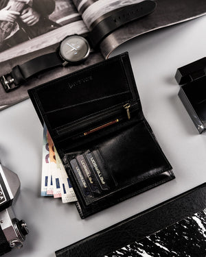 Šis maks ne tikai aizsargā jūsu kartes no nevēlamas skenēšanas, pateicoties iebūvētajai RFID aizsardzībai, bet arī nodrošina pietiekami daudz vietas visām jūsu nepieciešamajām lietām. Tā klasiskā melnā krāsa labi piestāv jebkuram stilam.