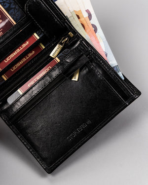 Šis elegantais un funkcionālais maks ir lieliska izvēle vīriešiem, kuri novērtē kvalitāti un drošību. Izgatavots no īstas ādas, tas nodrošina izturību un stilīgu izskatu. Melnā krāsa nodrošina daudzpusību, tāpēc maks lieliski iederēsies jebkurā stilā. Pateicoties integrētajai RFID aizsardzībai, jūsu kartes tiks pasargātas no nevēlamas skenēšanas. Makam ir 6-10 karšu nodalījumi, padarot to praktisku un ietilpīgu. Tā izmēri – 13 cm x 10 cm x 3 cm – ļauj ērti uzglabāt maku kabatā vai somā.
