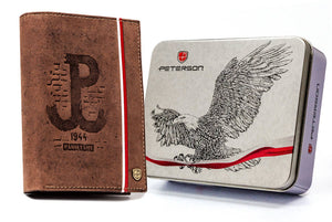 Šis elegantais Peterson maks ir izgatavots no augstas kvalitātes īstas ādas, kas nodrošina izturību un stilīgu izskatu. Brūnais dizains piešķir tam klasisku un daudzpusīgu izskatu, kas piemērots dažādiem gadījumiem.