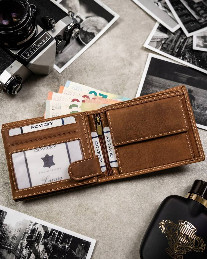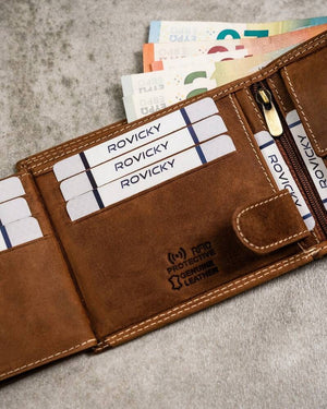 Šis vīriešu maks no Always Wild ir izgatavots no augstas kvalitātes dabīgas zamšādas un nubuka ādas, nodrošinot izturību un eleganci. Gaiši brūnā krāsa piešķir klasisku un stilīgu izskatu. Makam ir liels izmērs, tāpēc tajā ērti var ievietot 6–10 kartes. Turklāt tam ir RFID aizsardzība, kas palīdz aizsargāt jūsu kartes no nevēlamas skenēšanas. Šī ir lieliska izvēle tiem, kas novērtē kvalitāti un drošību.