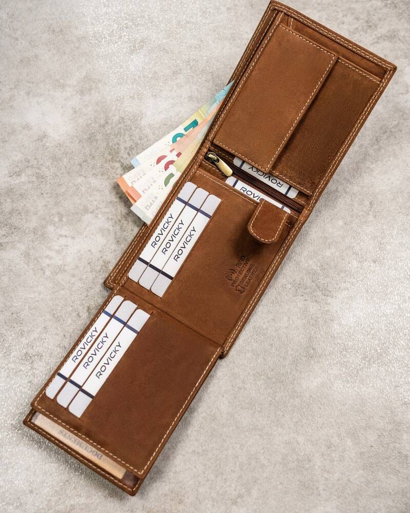 Šis vīriešu maks no Always Wild kolekcijas ir izgatavots no augstas kvalitātes dabīgas zamšādas un nubuka ādas, kas tam piešķir elegantu un izturīgu dizainu. Gaiši brūnā krāsa labi sader ar dažādiem stiliem, un lielais izmērs nodrošina, ka jums ir pietiekami daudz vietas visām nepieciešamajām lietām. Makam ir arī RFID aizsardzība, kas palīdz aizsargāt jūsu kartes no nevēlamas skenēšanas. Ar 6-10 karšu nodalījumiem šis maks ir praktiska izvēle ikdienas lietošanai.