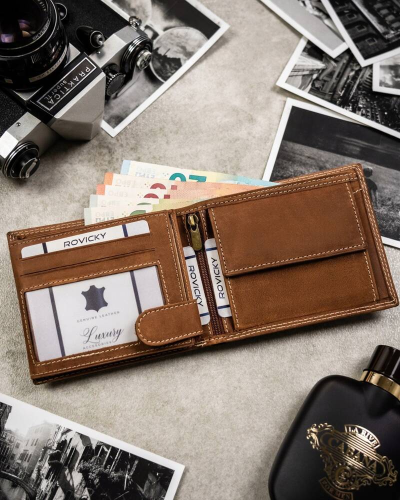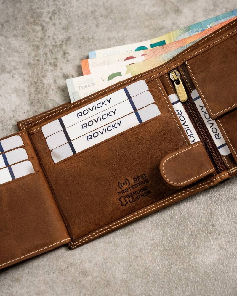 Šis vīriešu maks no Always Wild ir lieliska izvēle tiem, kas novērtē kvalitāti un funkcionalitāti. Izgatavots no dabīgas zamšādas un nubuka ādas, tas ne tikai izskatās eleganti, bet arī nodrošina izturību. Gaiši brūnā krāsa piešķir klasisku un stilīgu izskatu. Makam ir RFID aizsardzība, kas palīdz aizsargāt jūsu kartes no nevēlamas skenēšanas. Ar 6-10 karšu nodalījumiem tas ir pietiekami ietilpīgs, lai apmierinātu jūsu ikdienas vajadzības.