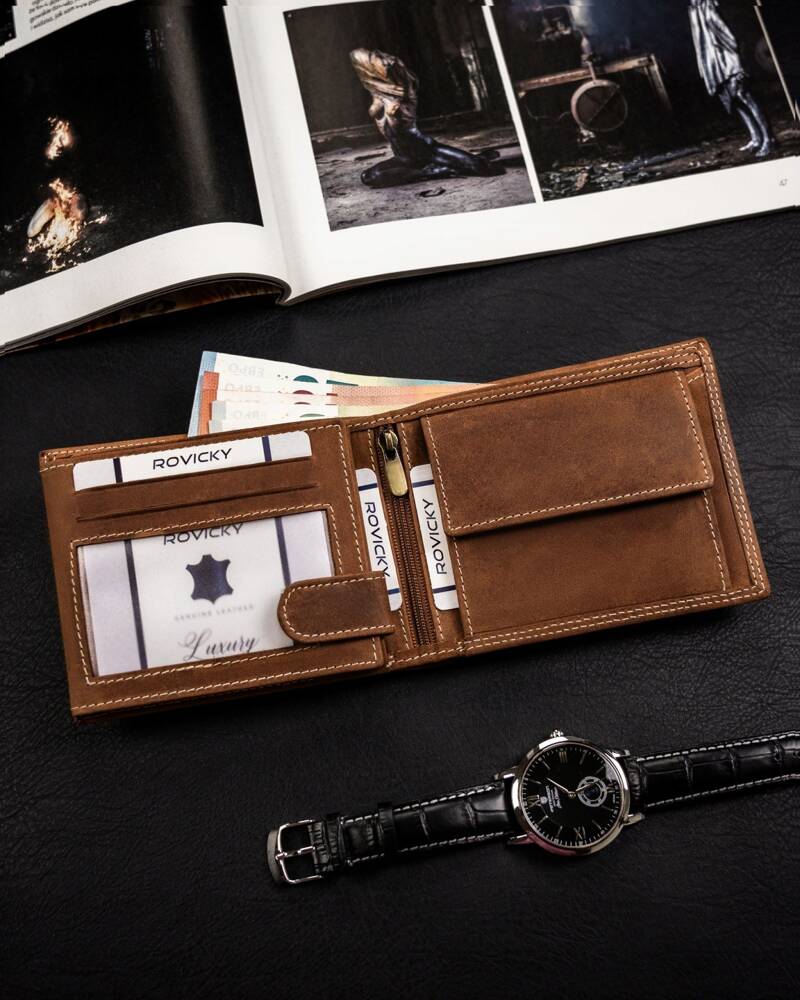 Šis elegantais un funkcionālais maks ir lieliska izvēle vīriešiem, kuri novērtē kvalitāti un drošību. Izgatavots no dabīgas zamšādas un nubuka ādas, tas nodrošina izturību un stilīgu izskatu. Gaiši brūnā krāsa piešķir klasisku un daudzpusīgu izskatu, kas piemērots dažādiem gadījumiem. Makam ir RFID aizsardzība, kas palīdz aizsargāt jūsu kartes no nevēlamas skenēšanas. Ar 6-10 karšu nodalījumiem tas nodrošina pietiekami daudz vietas visiem jūsu svarīgajiem dokumentiem. Pateicoties lielajam izmēram, šis maks ir praktisks un ērts ikdienas lietošanai.
