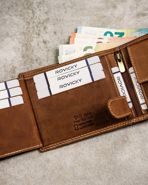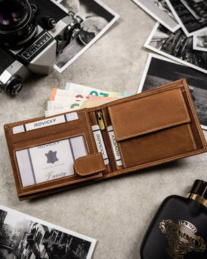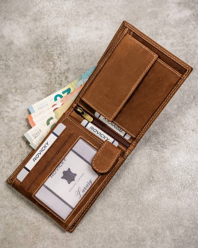 Šis elegantais un funkcionālais maks ir lieliska izvēle vīriešiem, kuri novērtē kvalitāti un stilu. Izgatavots no dabīgas zamšādas un nubuka ādas, tas nodrošina izturību un komfortu. Gaiši brūnā krāsa piešķir klasisku un daudzpusīgu izskatu, kas piemērots dažādiem gadījumiem. Makam ir RFID aizsardzība, kas palīdz aizsargāt jūsu kartes no nevēlamas skenēšanas. Ar 6-10 karšu nodalījumiem tas nodrošina pietiekami daudz vietas visiem jūsu svarīgajiem dokumentiem. Pateicoties lielajam izmēram, šis maks ir praktisks un ietilpīgs, un tā izmēri 10,5 cm x 12,5 cm x 2,5 cm ļauj tam ērti ietilpt kabatā vai somā.