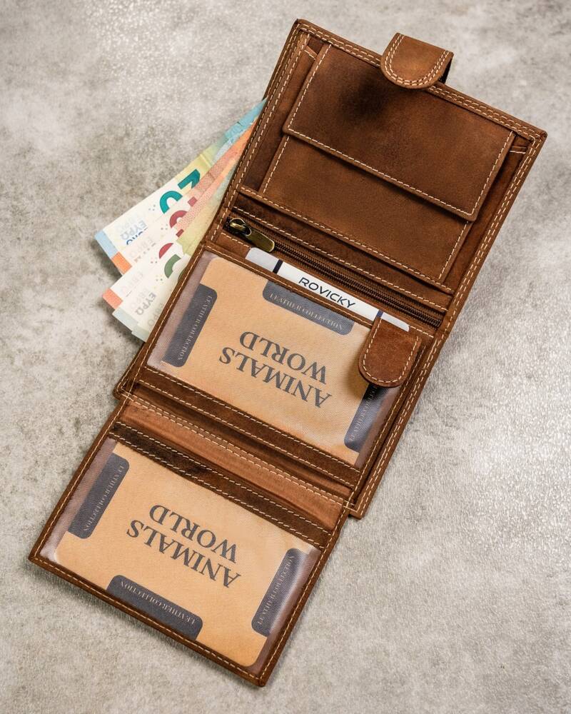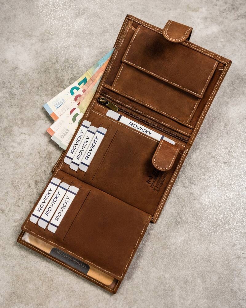 Šis elegantais un funkcionālais vīriešu maks ir lieliska izvēle tiem, kas novērtē kvalitāti un drošību. Izgatavots no īstas ādas, tas ne tikai izskatās stilīgi, bet arī nodrošina izturību. Gaiši brūnā krāsa piešķir klasisku un daudzpusīgu izskatu, kas piemērots dažādiem gadījumiem.