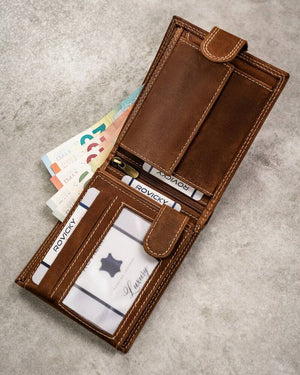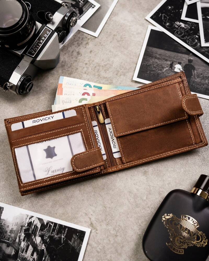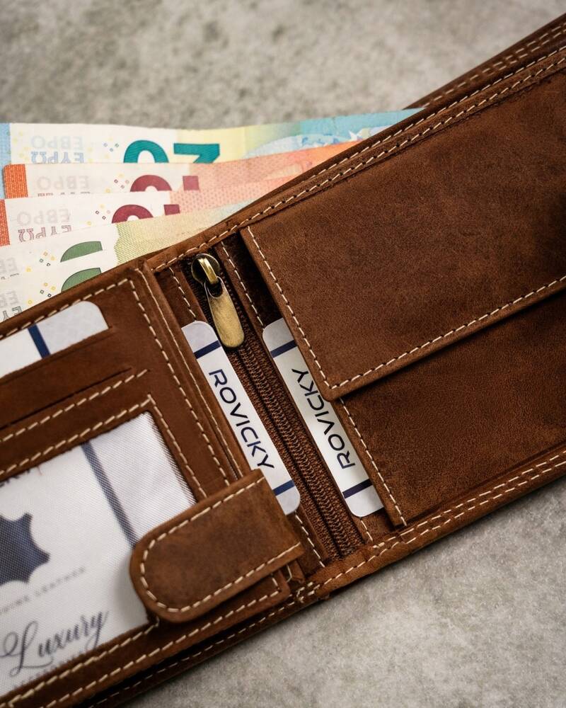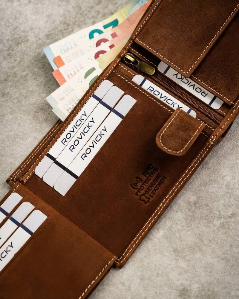Šis elegantais un funkcionālais maks ir lieliska izvēle vīriešiem, kuri novērtē kvalitāti un drošību. Izgatavots no īstas ādas, tas ne tikai izskatās stilīgi, bet arī nodrošina izturību. Gaiši brūnā krāsa piešķir klasisku un daudzpusīgu izskatu, kas piemērots dažādiem gadījumiem. Pateicoties integrētajai RFID aizsardzībai, jūsu kartes būs aizsargātas no nevēlamas skenēšanas. Makam ir 6-10 karšu nodalījumi, padarot to ideāli piemērotu gan ikdienas lietošanai, gan ceļojumiem. Kompaktie izmēri ļauj to ērti nēsāt kabatā vai somā.
