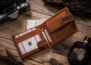 Šis elegantais un funkcionālais maks ir lieliska izvēle vīriešiem, kuri novērtē kvalitāti un drošību. Izgatavots no dabīgas zamšādas un nubuka ādas, tas ne tikai izskatās stilīgi, bet arī nodrošina izturību. Gaiši brūnā krāsa piešķir klasisku un daudzpusīgu izskatu, kas piemērots dažādiem gadījumiem. Lielais izmērs ļauj ērti uzglabāt visas nepieciešamās mantas, un RFID aizsardzība aizsargā jūsu kartes no nevēlamas skenēšanas. Ar 6-10 karšu nodalījumiem šis maks ir praktisks un ērts ikdienas lietošanai.