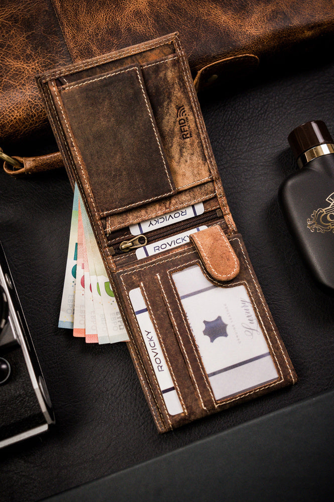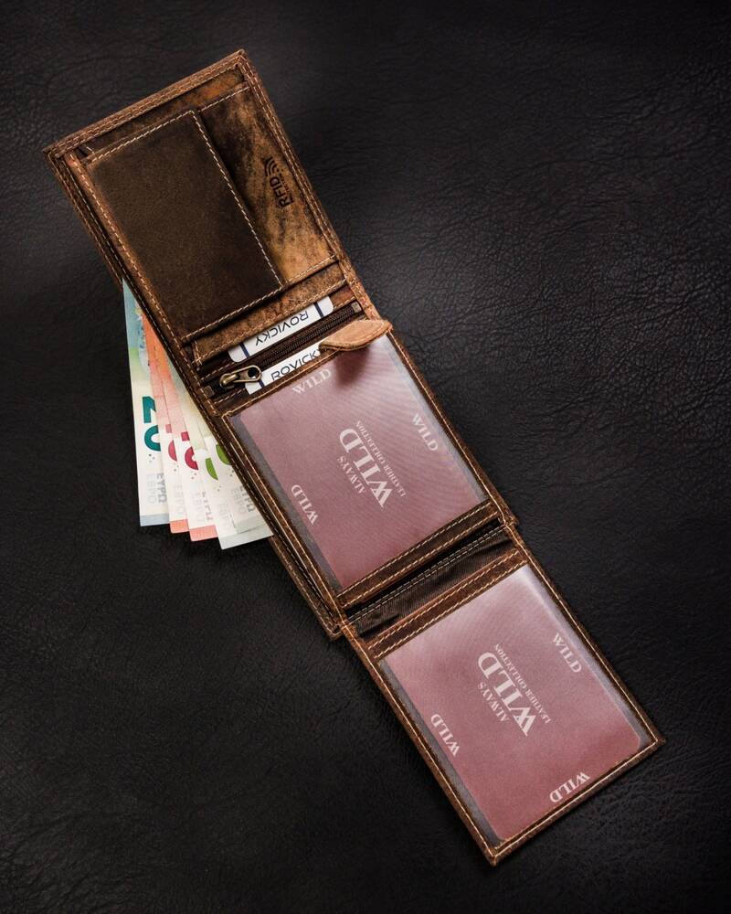 Šis elegantais un funkcionālais vīriešu maks Always Wild X135 ir izgatavots no dabīgas zamšādas un nubuka ādas, kas tam piešķir unikālu stilu un izturību. Gaiši brūnā krāsa labi sader ar dažādiem apģērba stiliem. Lielais izmērs nodrošina, ka jums būs pietiekami daudz vietas visām nepieciešamajām lietām. Makam ir arī RFID aizsardzība, kas palīdz aizsargāt jūsu kartes no nevēlamas skenēšanas. Ar 6-10 karšu nodalījumiem šis maks ir praktiska izvēle ikdienas lietošanai.
