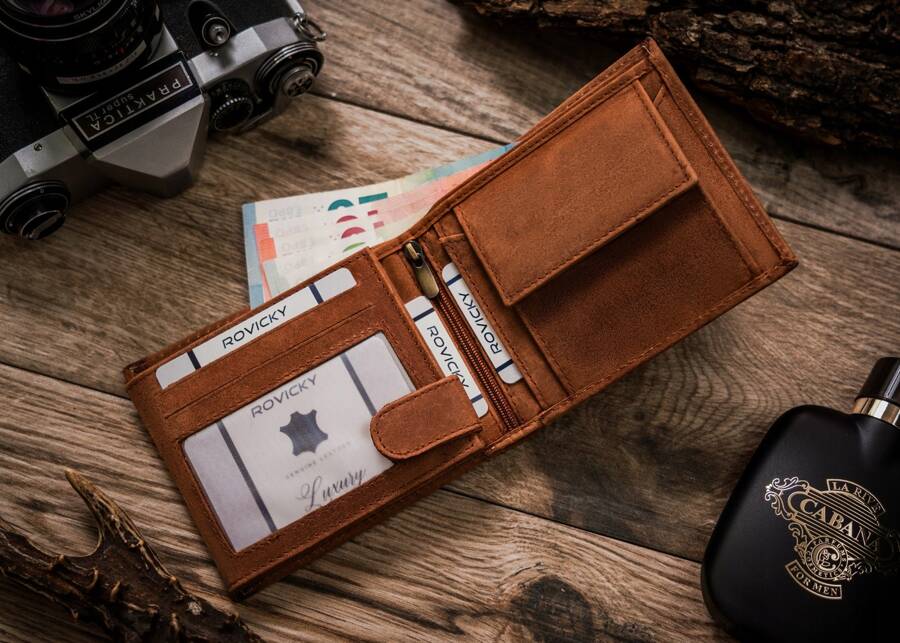 Šis elegantais un funkcionālais maks ir lieliska izvēle vīriešiem, kuri novērtē kvalitāti un stilu. Izgatavots no dabīgas zamšādas un nubuka ādas, tas nodrošina izturību un komfortu. Gaiši brūnā krāsa piešķir klasisku un daudzpusīgu izskatu, kas piemērots dažādiem gadījumiem. Makam ir RFID aizsardzība, kas palīdz aizsargāt jūsu kartes no nevēlamas skenēšanas. Ar 6-10 karšu nodalījumiem tas ir pietiekami ietilpīgs, lai tajā varētu ievietot visus jūsu svarīgos dokumentus un kartes.