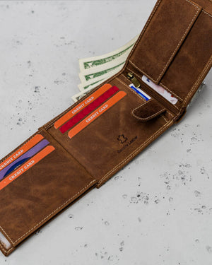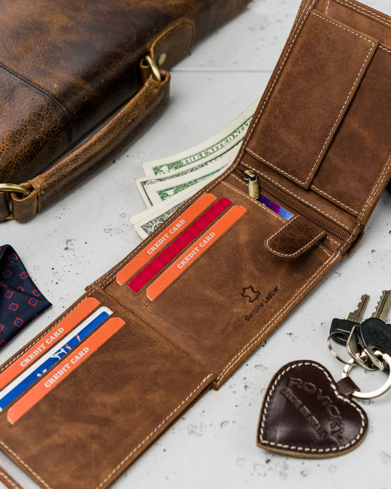 Šis elegantais un funkcionālais maks ir lieliska izvēle vīriešiem, kuri novērtē kvalitāti un stilu. Izgatavots no dabīgas zamšādas un nubuka ādas, tas nodrošina izturību un komfortu. Gaiši brūnā krāsa piešķir klasisku un daudzpusīgu izskatu, kas piemērots dažādiem gadījumiem. Lielais izmērs ļauj ērti uzglabāt visas nepieciešamās mantas, un RFID aizsardzība nodrošina jūsu karšu drošību. Ar 6-10 karšu nodalījumiem šis maks ir praktiska un stilīga izvēle ikdienas lietošanai.