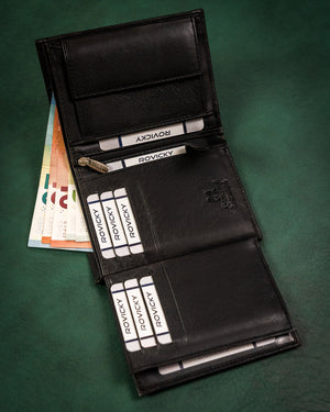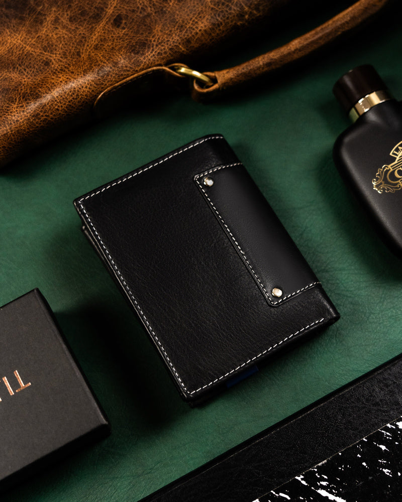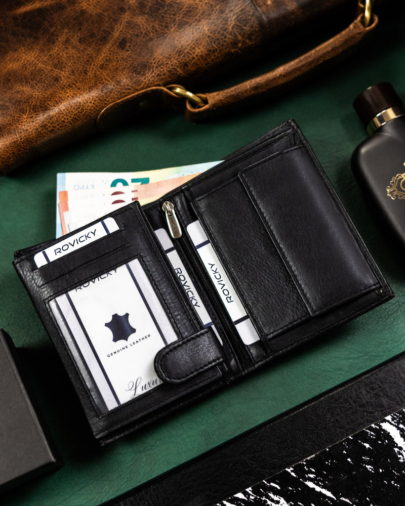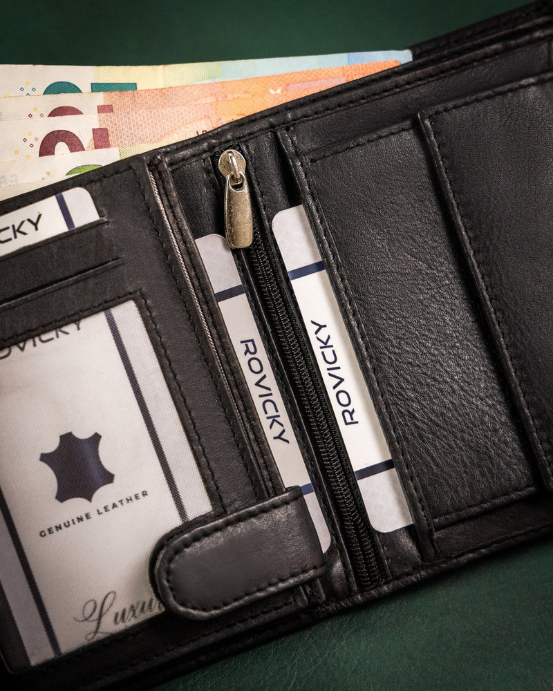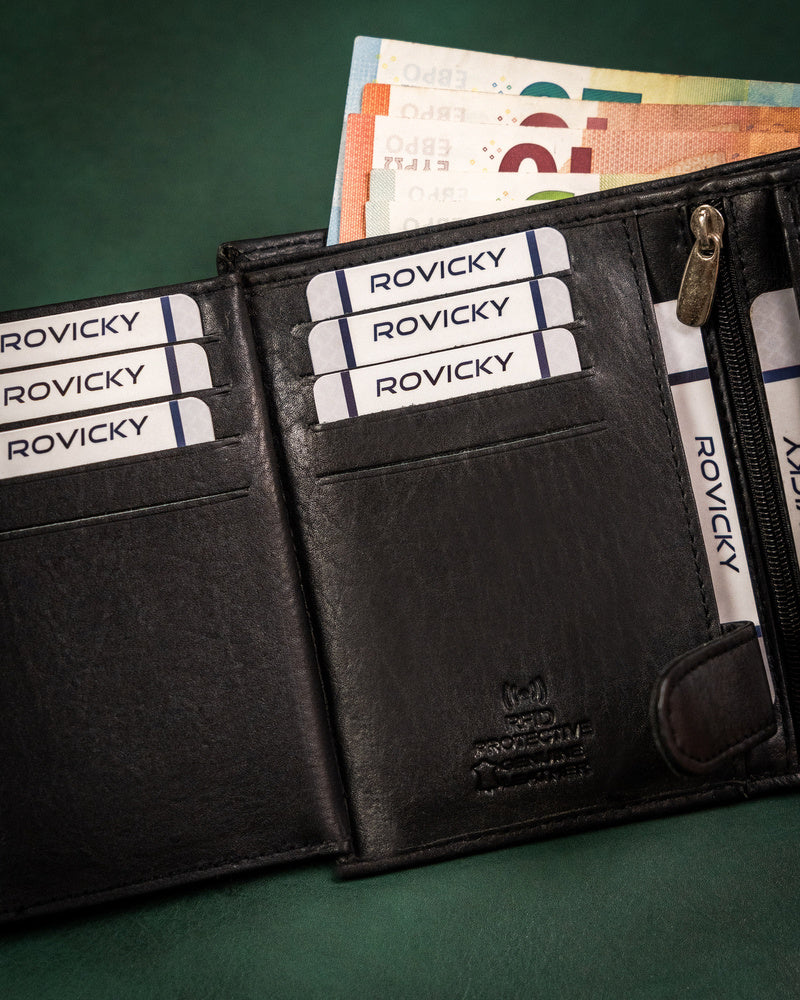 Šis elegantais un funkcionālais maks ir lieliska izvēle vīriešiem, kuri novērtē kvalitāti un drošību. Izgatavots no īstas ādas, tas nodrošina izturību un stilīgu izskatu. Melnā krāsa nodrošina daudzpusību, tāpēc maks lieliski iederēsies jebkurā stilā. Pateicoties integrētajai RFID aizsardzībai, jūsu kartes tiks aizsargātas no nevēlamas skenēšanas. Ar 6-10 karšu nodalījumiem šis maks ir praktisks un ietilpīgs, un tā kompaktie izmēri padara to ērtu nēsāšanai katru dienu.