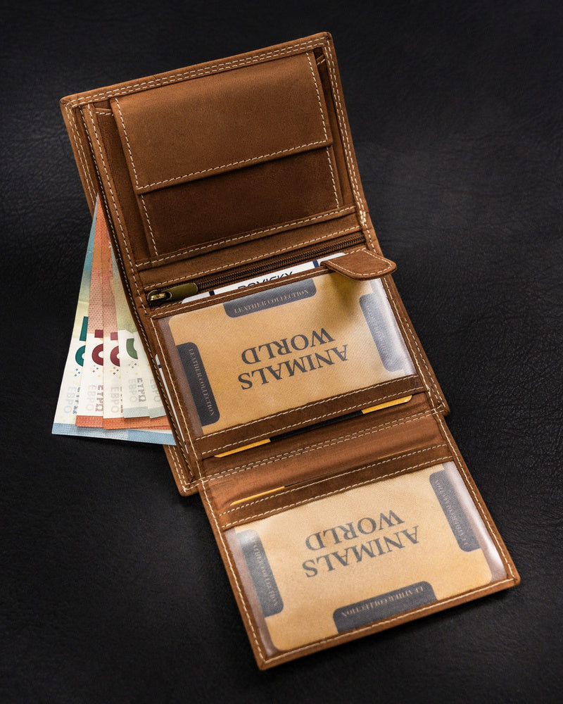 Šis elegantais un funkcionālais vīriešu maks Always Wild X46 ir lieliska izvēle tiem, kas novērtē kvalitāti un stilu. Izgatavots no dabīgas zamšādas un nubuka ādas, tas sniedz greznības un izturības sajūtu. Gaiši brūnā krāsa piešķir klasisku un daudzpusīgu izskatu, kas piemērots dažādiem gadījumiem.