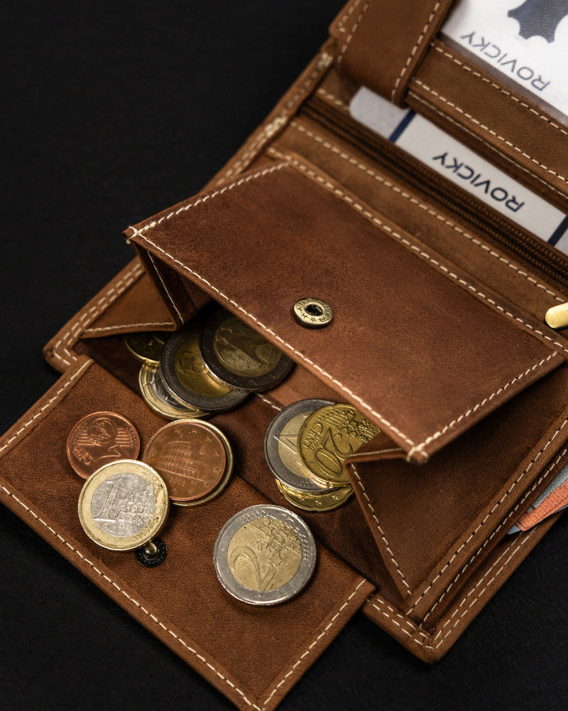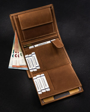 Maciņš ir pietiekami liels, lai ērti turētu visas jūsu kartes un skaidru naudu. Ar 6–10 karšu nodalījumiem tas nodrošina, ka jums vienmēr ir pietiekami daudz vietas jūsu nepieciešamajām lietām. Turklāt iebūvētā RFID aizsardzība palīdz aizsargāt jūsu personas datus no neatļautas skenēšanas.
