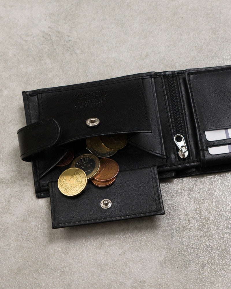 Šis vīriešu maks no Always Wild kolekcijas ir izgatavots no augstas kvalitātes īstas ādas, nodrošinot izturību un eleganci. Melnā krāsa nodrošina klasisku un daudzpusīgu stilu, kas piemērots jebkuram gadījumam. Kompaktais izmērs ļauj ērti nēsāt maku kabatā, un RFID aizsardzība palīdz aizsargāt jūsu kartes no neatļautas skenēšanas. Makam ir 1-5 karšu nodalījumi, padarot to ideāli piemērotu tiem, kas novērtē minimālismu un funkcionalitāti.