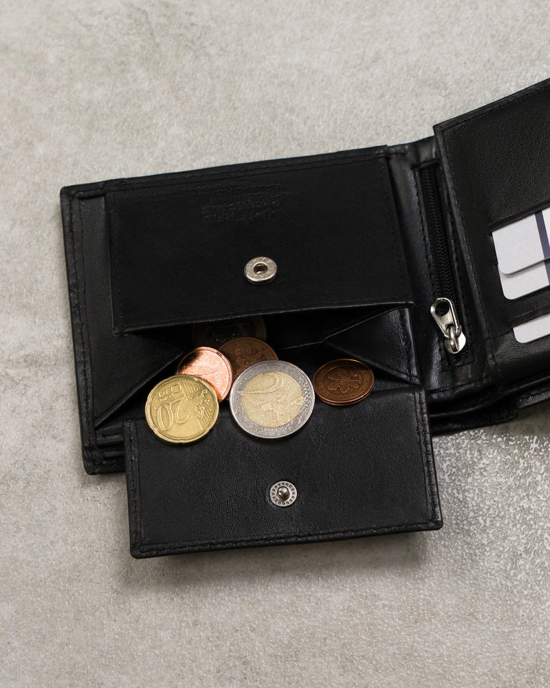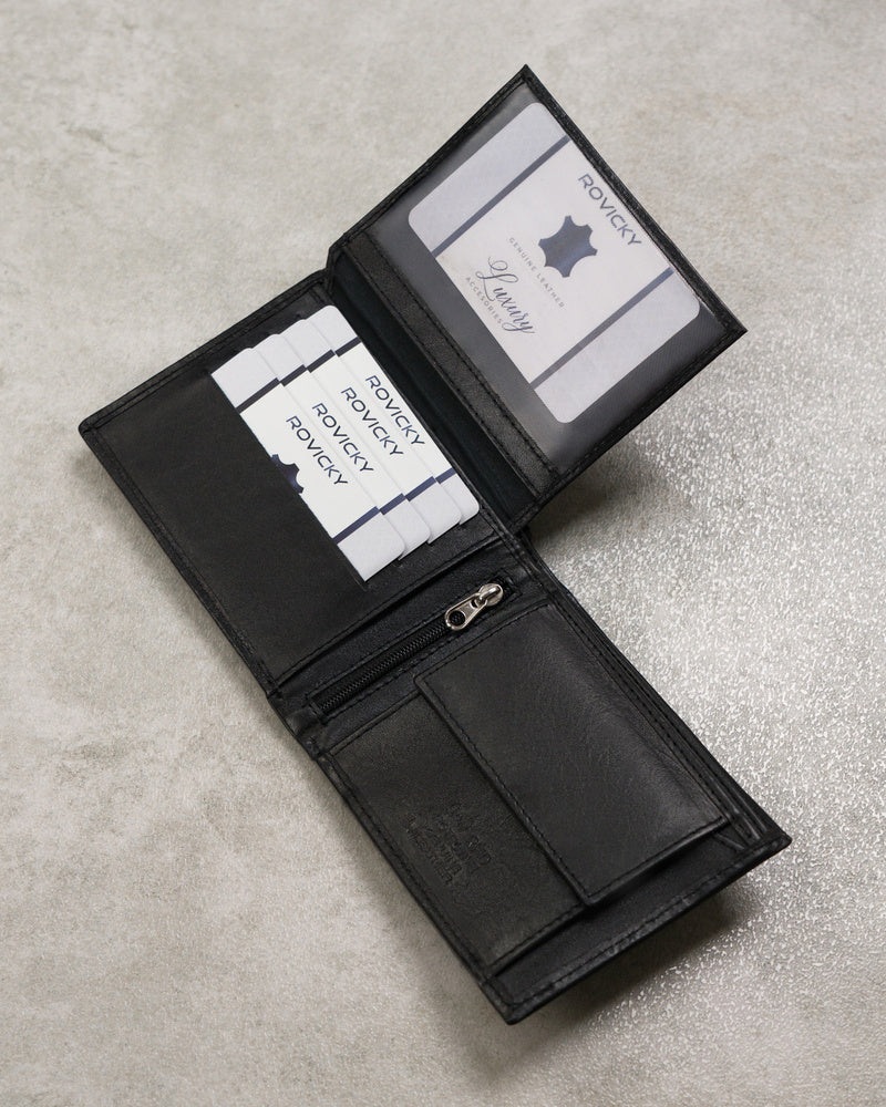 Šis elegantais un funkcionālais maks ir lieliska izvēle vīriešiem, kuri novērtē kvalitāti un drošību. Izgatavots no īstas ādas, tas nodrošina izturību un stilīgu izskatu. Melnā krāsa nodrošina daudzpusību, tāpēc maks lieliski iederēsies jebkurā stilā. Pateicoties integrētajai RFID aizsardzībai, jūsu kartes būs pasargātas no nevēlamas skenēšanas. Ar 6-10 karšu nodalījumiem šis maks ir praktisks un ietilpīgs, un tā kompaktie izmēri padara to ērtu nēsāšanai katru dienu.