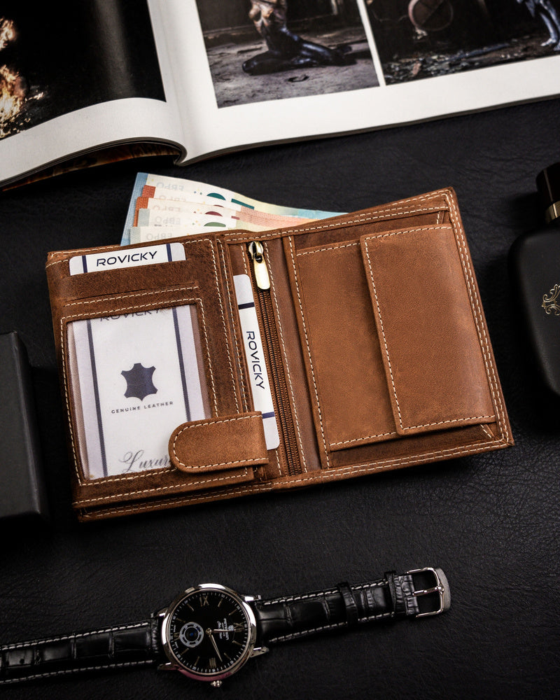 Šis elegantais un funkcionālais vīriešu maks no Always Wild kolekcijas ir izgatavots no dabīgas zamšādas un nubuka ādas, piešķirot tam greznu un izturīgu sajūtu. Gaiši brūnā krāsa nodrošina klasisku un daudzpusīgu stilu, kas piemērots dažādiem gadījumiem. Lielais izmērs nodrošina pietiekami daudz vietas visām nepieciešamajām lietām, un 6-10 karšu nodalījumi ļaus ērti uzglabāt visas nepieciešamās kartes. Turklāt integrētā RFID aizsardzība palīdzēs aizsargāt jūsu personas datus no neatļautas skenēšanas. Maka izmēri ir 13 cm x 9,5 cm x 2,5 cm, padarot to ideāli piemērotu ikdienas lietošanai.