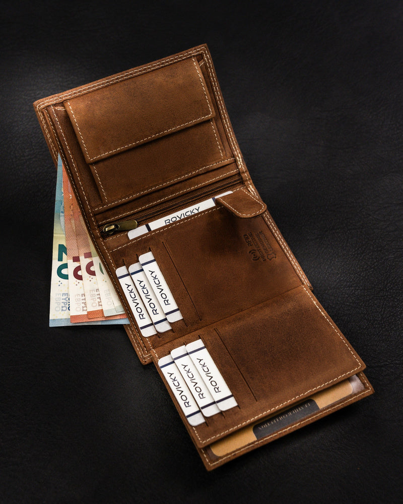 Šis elegantais vīriešu maks no Always Wild kolekcijas ir izgatavots no dabīgas zamšādas un nubuka ādas, kas tam piešķir greznu un izturīgu izskatu. Gaiši brūnā krāsa labi sader ar dažādiem stiliem, un lielais izmērs nodrošina, ka jums ir pietiekami daudz vietas visām jūsu nepieciešamajām lietām. Makam ir arī RFID aizsardzība, kas palīdz aizsargāt jūsu kartes no nevēlamas skenēšanas. Ar 6-10 karšu nodalījumiem šis maks ir praktiska un stilīga izvēle ikvienam vīrietim.