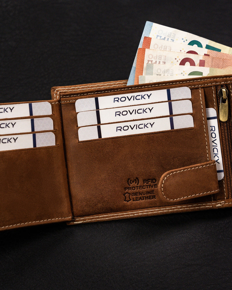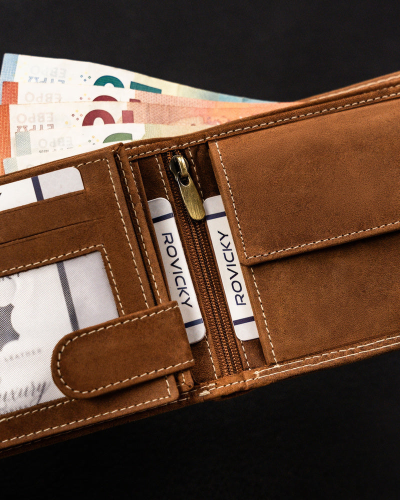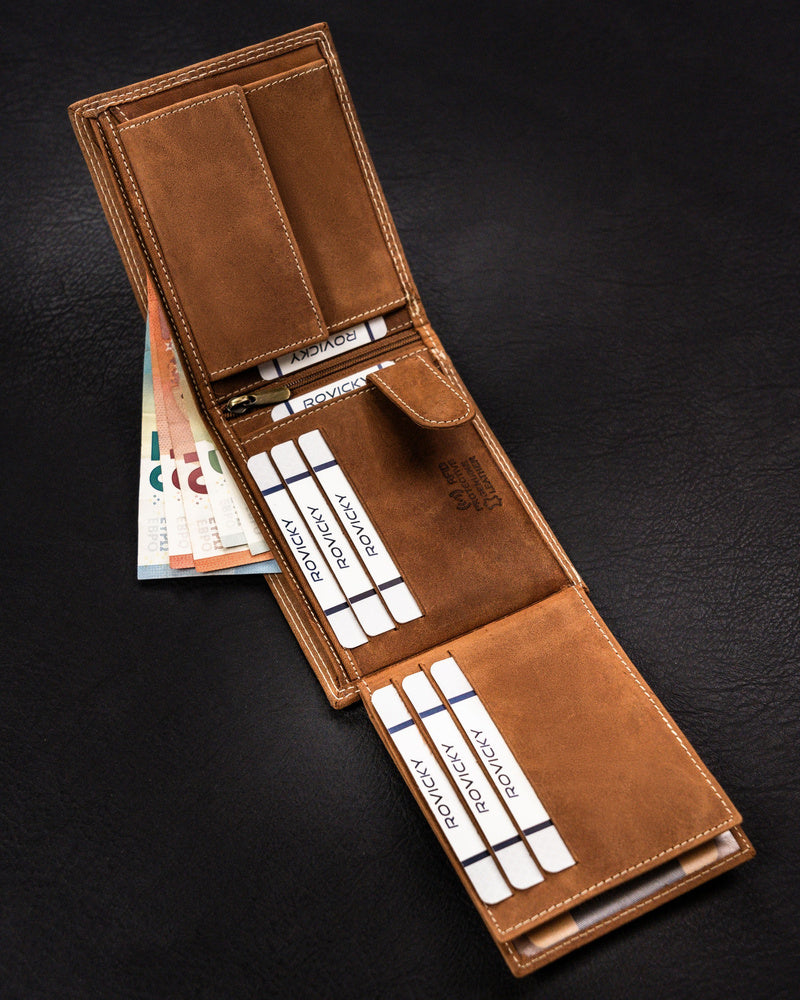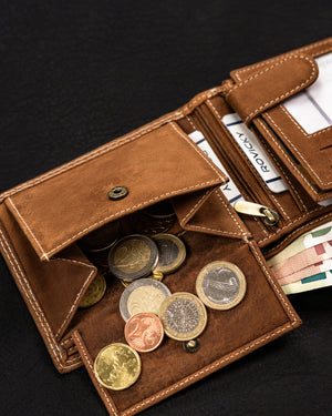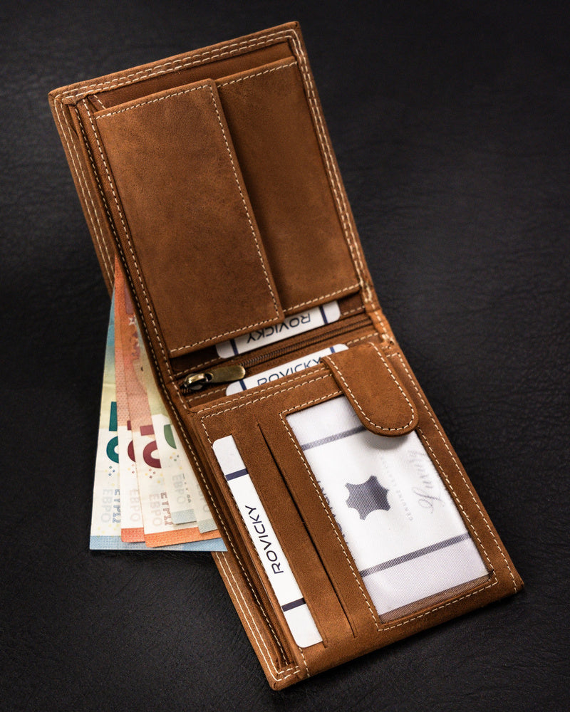 Šis vīriešu maks no Always Wild kolekcijas ir izgatavots no augstas kvalitātes dabīgas zamšādas un nubuka ādas, nodrošinot elegantu un izturīgu dizainu. Gaiši brūnā krāsa labi sader ar dažādiem stiliem, un lielais izmērs nodrošina, ka jums ir pietiekami daudz vietas visām jūsu kartēm un skaidrai naudai. Pateicoties integrētajai RFID aizsardzībai, jūsu personas dati būs pasargāti no neatļautas skenēšanas. Makam ir 6-10 karšu nodalījumi, padarot to praktisku un ērtu ikdienas lietošanai.