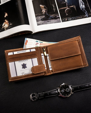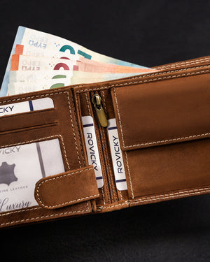 Šis elegantais un funkcionālais maks ir lieliska izvēle vīriešiem, kuri novērtē kvalitāti un stilu. Izgatavots no dabīgas zamšādas un nubuka ādas, tas nodrošina izturību un komfortu. Gaiši brūnā krāsa piešķir klasisku un daudzpusīgu izskatu, kas piemērots dažādiem gadījumiem. Lielais izmērs ļauj ērti uzglabāt visas nepieciešamās mantas, un RFID aizsardzība nodrošina jūsu karšu drošību. Ar 6-10 karšu nodalījumiem šis maks ir praktisks un ietilpīgs.