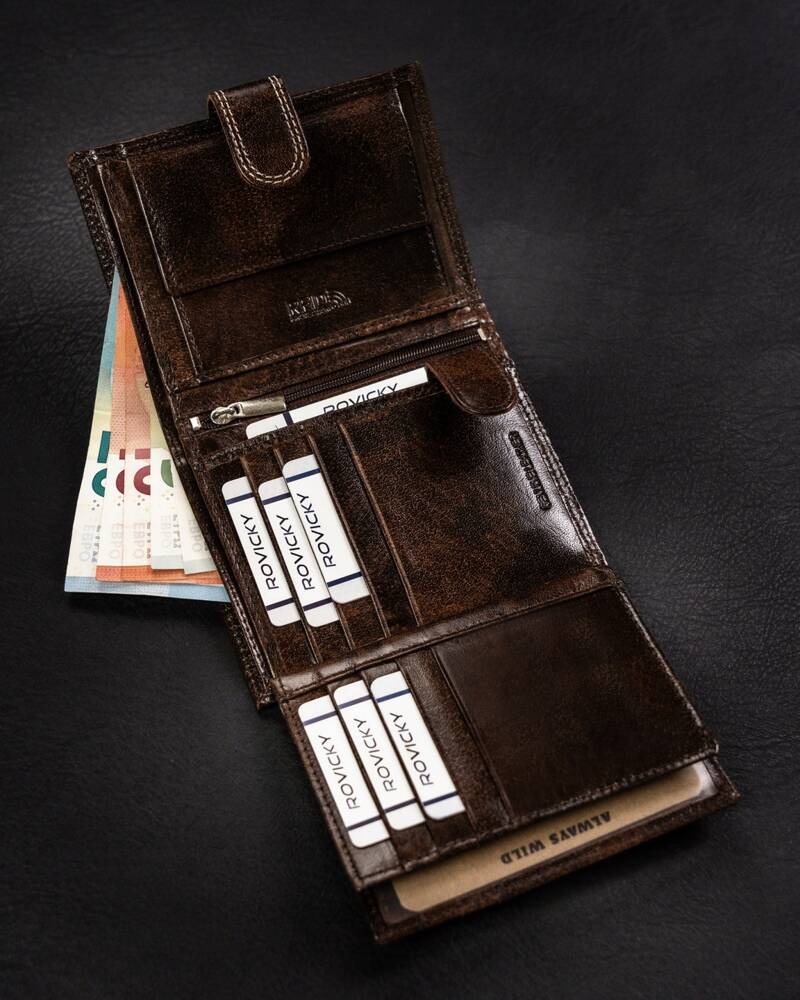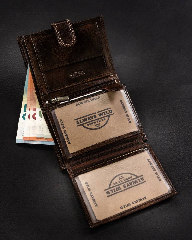 Šis vīriešu maks no Always Wild kolekcijas ir izgatavots no augstas kvalitātes īstas ādas, nodrošinot izturību un eleganci. Brūnais dizains piešķir klasisku un stilīgu izskatu. Lielais izmērs ļauj ērti uzglabāt vairāk nekā 15 kartes, un integrētā RFID aizsardzība palīdz aizsargāt jūsu personas datus no neatļautas nolasīšanas. Maka izmēri - 13 cm x 10 cm x 3 cm - nodrošina, ka tas būs ērts ikdienas lietošanai.