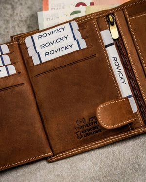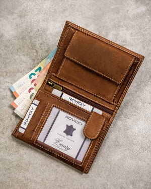 Šis elegantais un funkcionālais maks ir lieliska izvēle vīriešiem, kuri novērtē kvalitāti un drošību. Izgatavots no dabīgas zamšādas un nubuka ādas, tas ne tikai izskatās stilīgi, bet arī nodrošina izturību. Gaiši brūnā krāsa piešķir klasisku un daudzpusīgu izskatu, kas piemērots dažādiem gadījumiem. Lielais izmērs ļauj ērti uzglabāt visas nepieciešamās lietas, savukārt RFID aizsardzība aizsargā jūsu kartes no nevēlamas skenēšanas. Ar 6-10 karšu nodalījumiem šis maks ir praktisks un ērts ikdienas lietošanai.