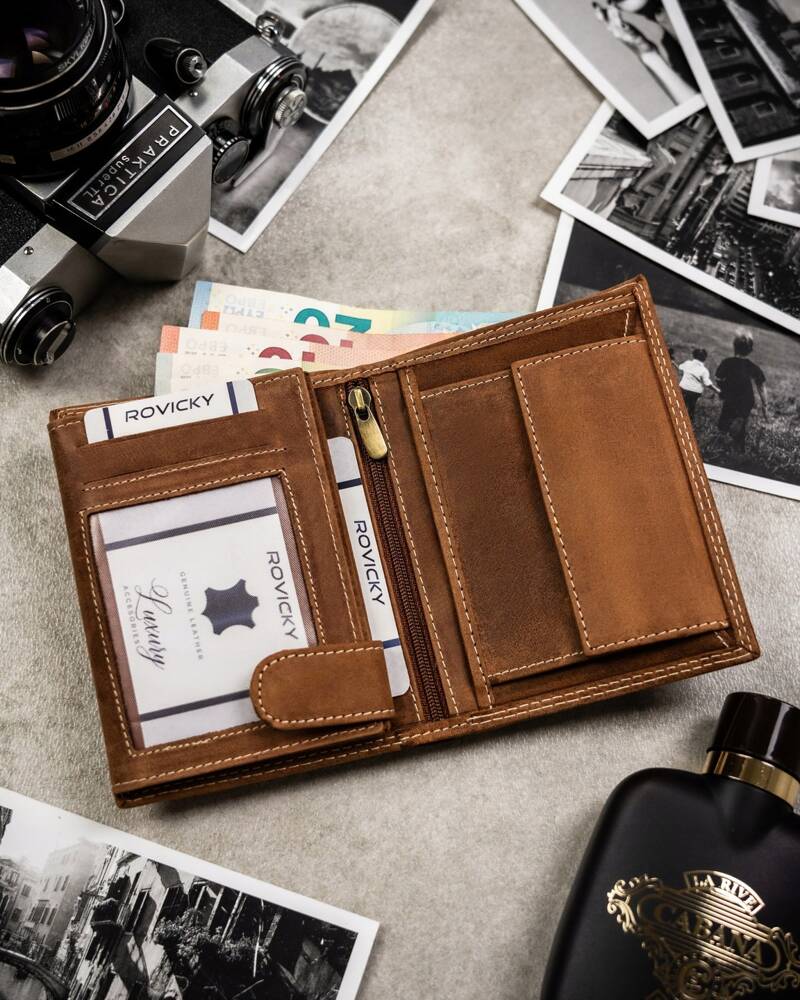 Šis elegantais un funkcionālais vīriešu maks Always Wild X99 ir lieliska izvēle tiem, kas novērtē kvalitāti un drošību. Izgatavots no dabīgas zamšādas un nubuka ādas, tas ir ne tikai stilīgs pēc izskata, bet arī izturīgs. Gaiši brūnā krāsa piešķir makam klasisku un daudzpusīgu stilu, kas piemērots dažādiem gadījumiem.