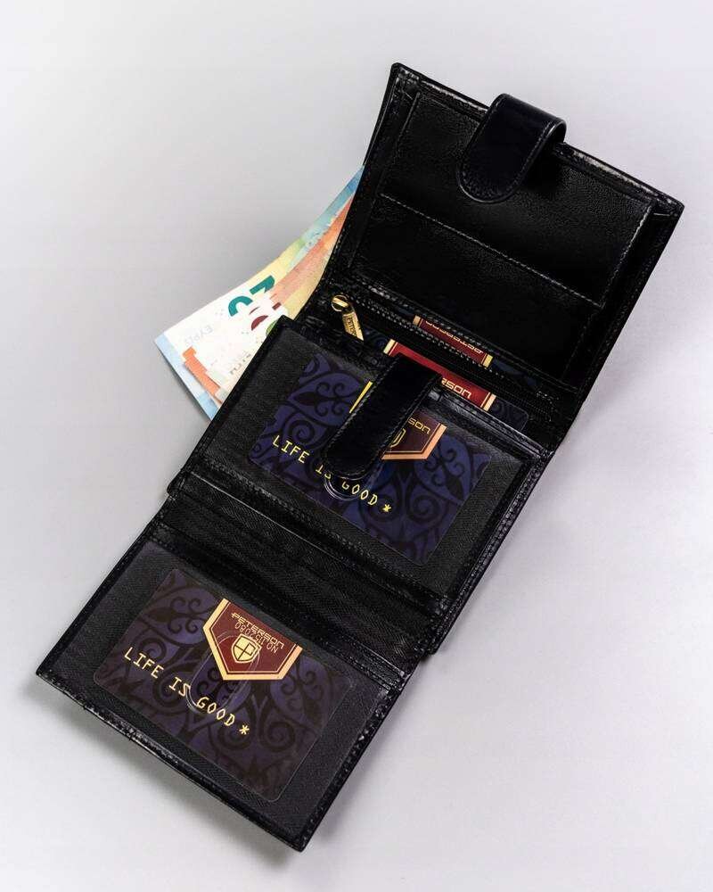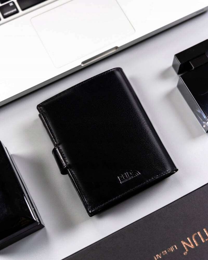 Šis elegantais vīriešu maks ir izgatavots no augstas kvalitātes īstas ādas, kas nodrošina izturību un stilīgu izskatu. Melnā krāsa piešķir tam klasisku un daudzpusīgu izskatu, kas piemērots jebkuram gadījumam.