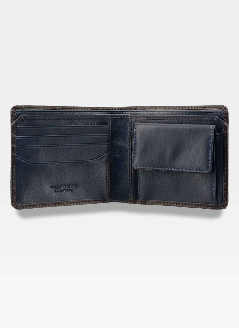 Šis elegantais zilais Visconti maks ir izgatavots no augstas kvalitātes īstas ādas, lai nodrošinātu izturību un stilu. Tā kompaktais dizains ir lieliski piemērots ikdienas lietošanai.