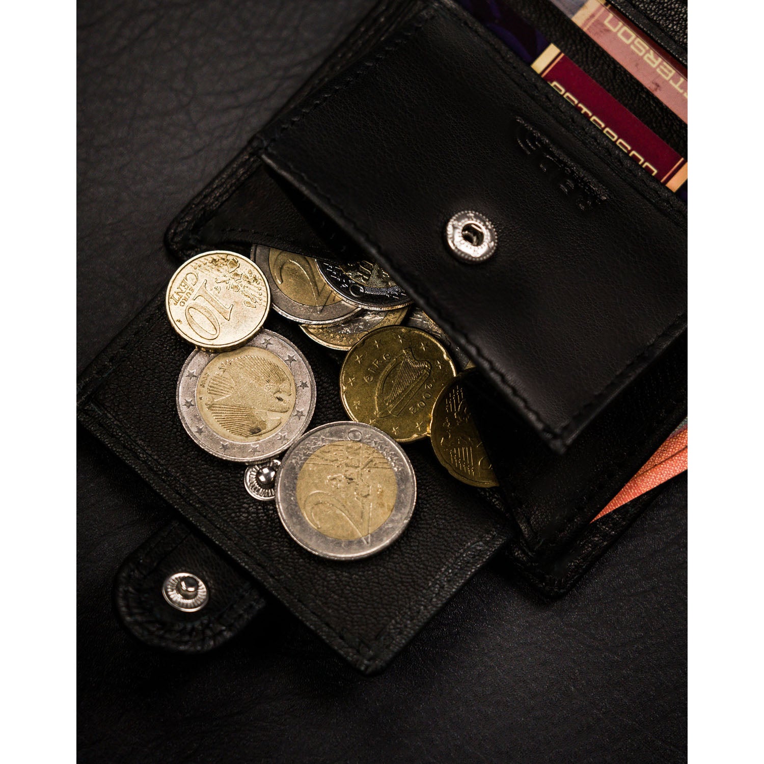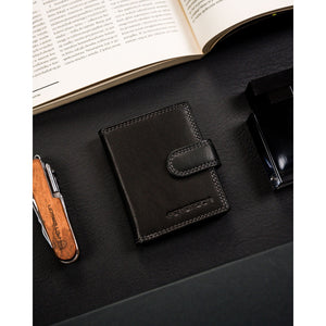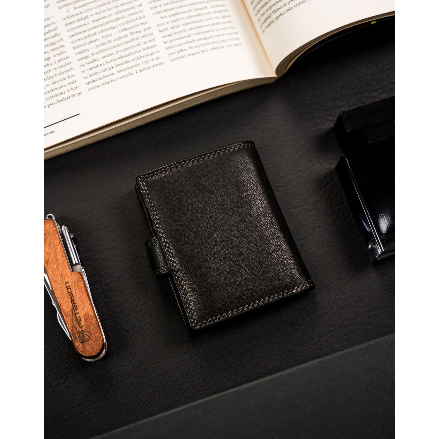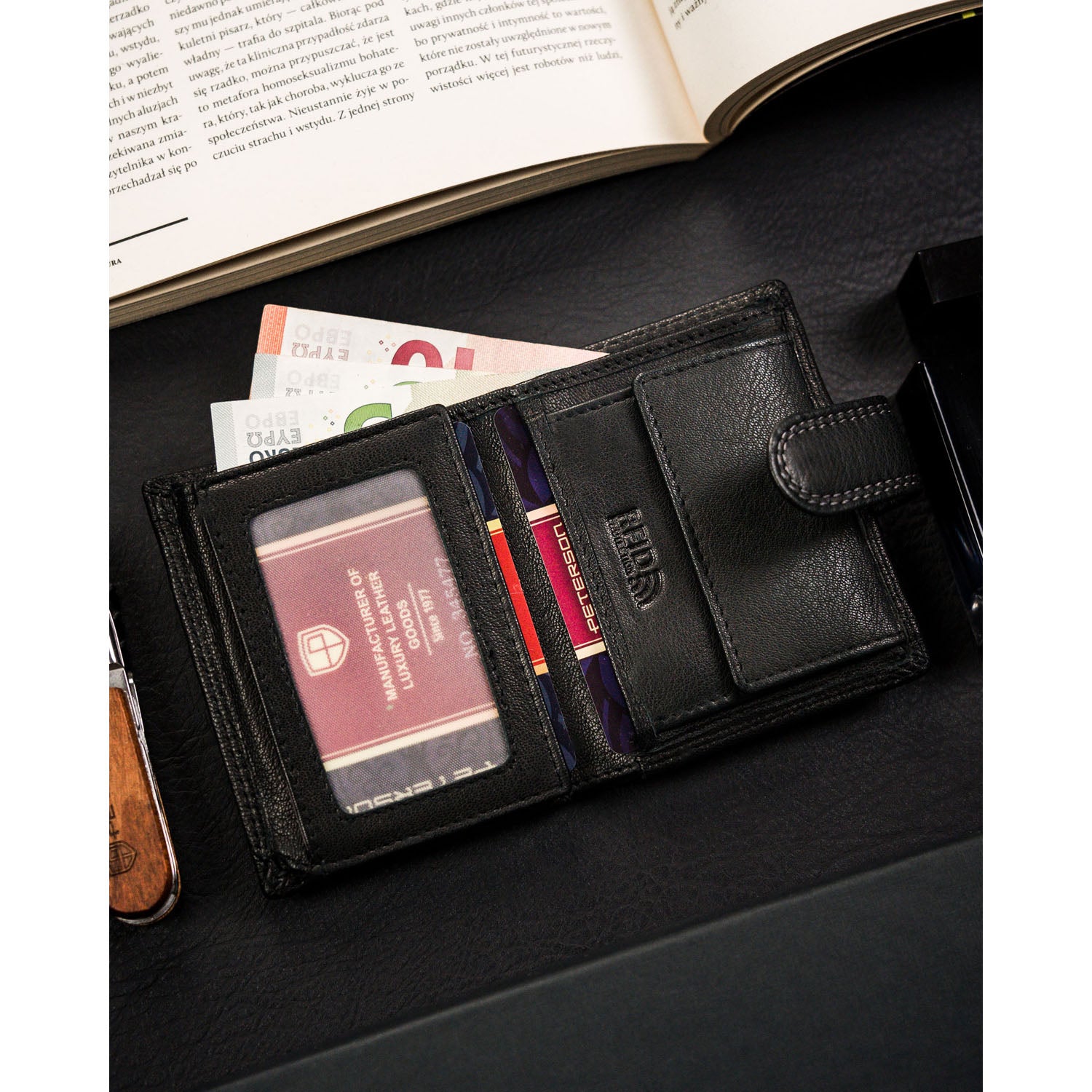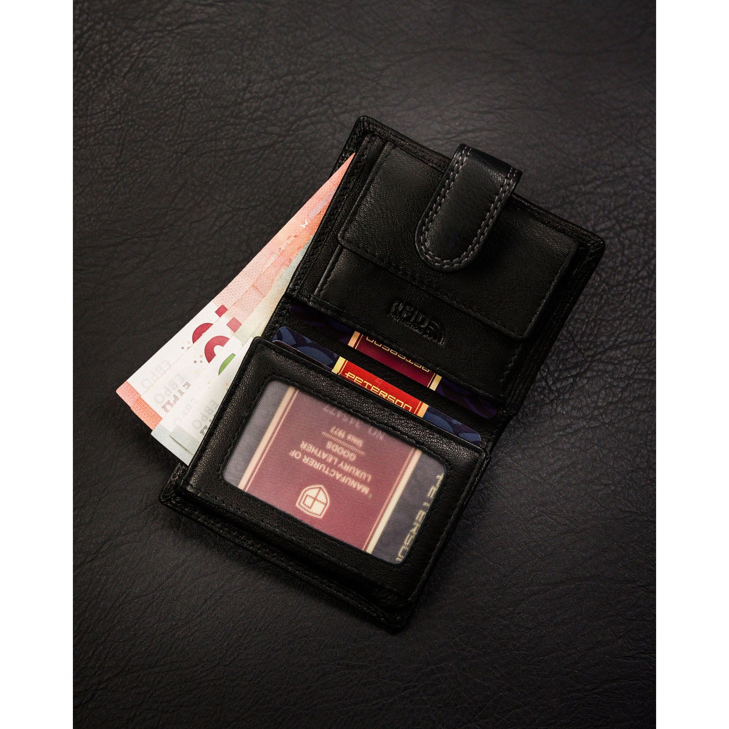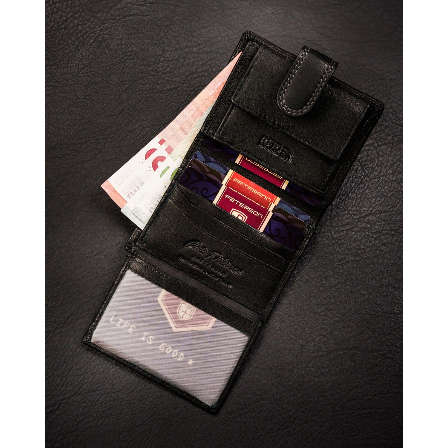 Šis elegantais vīriešu maks no Peterson ir izgatavots no augstas kvalitātes īstas ādas, kas nodrošina izturību un stilīgu izskatu. Melnā krāsa piešķir tam klasisku un daudzpusīgu izskatu, kas piemērots jebkuram gadījumam.