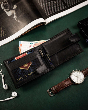 Šis vīriešu maks ir izgatavots no augstas kvalitātes īstas ādas, nodrošinot izturību un eleganci.
