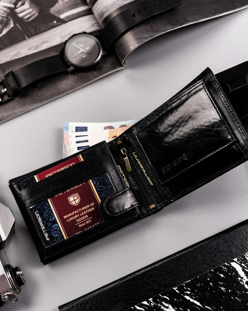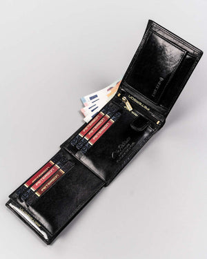 Šis elegantais melnais vīriešu ādas maks ir lieliska izvēle tiem, kas novērtē funkcionalitāti un drošību. Makā ir pietiekami daudz vietas gan skaidrai naudai, gan dažādiem dokumentiem.