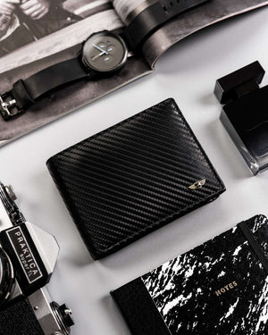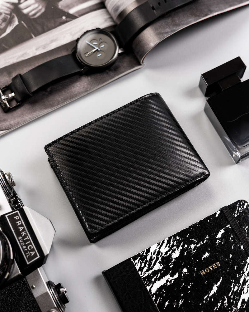 Šis vīriešu ādas maks ar RFID aizsardzību ir lieliska izvēle tiem, kas novērtē kvalitāti un drošību. Izgatavots no augstas kvalitātes īstas ādas, kas no ārpuses pārklāts ar oglekļa šķiedrai līdzīgu slāni, šis maks ne tikai izskatās stilīgi, bet arī ir ārkārtīgi izturīgs.