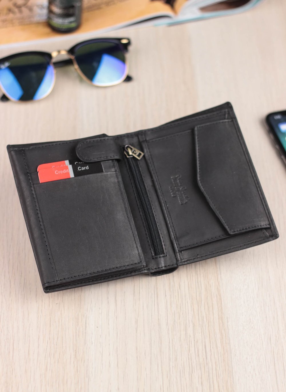 Šis elegantais vīriešu maks ir izgatavots no augstas kvalitātes īstas ādas, lai nodrošinātu izturību un stilu. Makam ir integrēta RFID aizsardzība, kas palīdz aizsargāt jūsu bezkontakta kartes no digitālo datu zādzības.