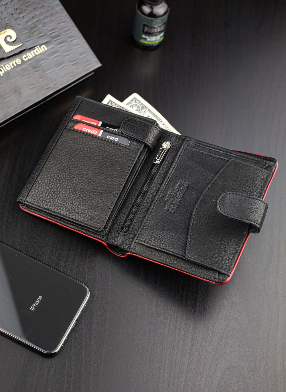 Vīriešu ādas maks Pierre Cardin Tumble 326A RFID melns + sarkans